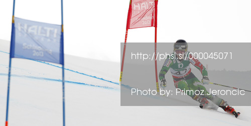 : Eemeli Pirinen of Finland skiing in first run of men giant slalom race of FIS Alpine skiing World Championships in Schladming, Austria. Men giant slalom race of FIS Alpine skiing World championships Schladming 2013, was held in Schladming, Austria, on Friday, 15th of February 2013.