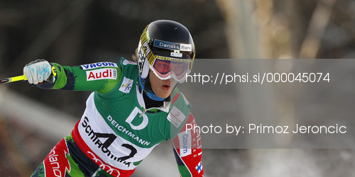 : Eemeli Pirinen of Finland skiing in first run of men giant slalom race of FIS Alpine skiing World Championships in Schladming, Austria. Men giant slalom race of FIS Alpine skiing World championships Schladming 2013, was held in Schladming, Austria, on Friday, 15th of February 2013.