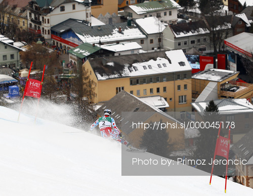 : Fifth placed Alexis Pinturault of France skiing in second run of men giant slalom race of FIS Alpine skiing World Championships in Schladming, Austria. Men giant slalom race of FIS Alpine skiing World championships Schladming 2013, was held in Schladming, Austria, on Friday, 15th of February 2013.