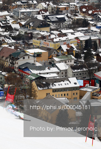 : Second placed Marcel Hirscher of Austria skiing in second run of men giant slalom race of FIS Alpine skiing World Championships in Schladming, Austria. Men giant slalom race of FIS Alpine skiing World championships Schladming 2013, was held in Schladming, Austria, on Friday, 15th of February 2013.
