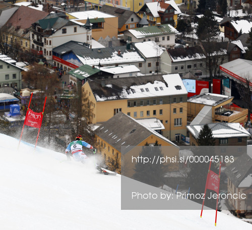 : Second placed Marcel Hirscher of Austria skiing in second run of men giant slalom race of FIS Alpine skiing World Championships in Schladming, Austria. Men giant slalom race of FIS Alpine skiing World championships Schladming 2013, was held in Schladming, Austria, on Friday, 15th of February 2013.
