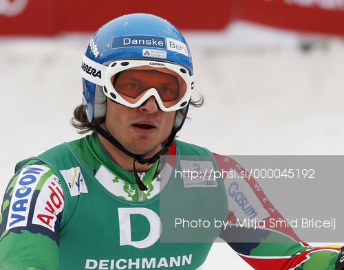: Marcus Sandell of Finland reacts in finish of second run of men giant slalom race of FIS Alpine skiing World Championships in Schladming, Austria. Men giant slalom race of FIS Alpine skiing World championships Schladming 2013, was held in Schladming, Austria, on Friday, 15th of February 2013.