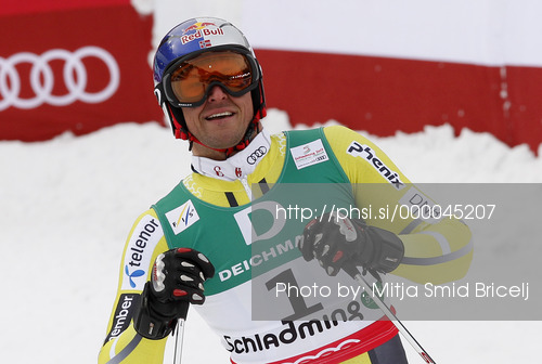 : Fourth placed Aksel Lund Svindal of Norway reacts in finish of second run of men giant slalom race of FIS Alpine skiing World Championships in Schladming, Austria. Men giant slalom race of FIS Alpine skiing World championships Schladming 2013, was held in Schladming, Austria, on Friday, 15th of February 2013.