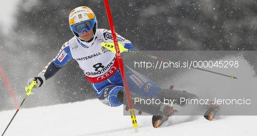 : Maria Pietilae-Holmner of Sweden skiing in first run of women slalom race of FIS Alpine skiing World Championships in Schladming, Austria. Women slalom race of FIS Alpine skiing World championships Schladming 2013, was held in Schladming, Austria, on Saturday, 16th of February 2013.