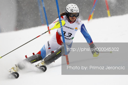 : Wendy Holdener of Switzerland skiing in first run of women slalom race of FIS Alpine skiing World Championships in Schladming, Austria. Women slalom race of FIS Alpine skiing World championships Schladming 2013, was held in Schladming, Austria, on Saturday, 16th of February 2013.