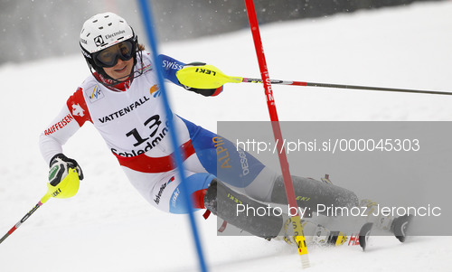 : Wendy Holdener of Switzerland skiing in first run of women slalom race of FIS Alpine skiing World Championships in Schladming, Austria. Women slalom race of FIS Alpine skiing World championships Schladming 2013, was held in Schladming, Austria, on Saturday, 16th of February 2013.