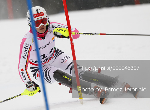 : Christina Geiger of Germany skiing in first run of women slalom race of FIS Alpine skiing World Championships in Schladming, Austria. Women slalom race of FIS Alpine skiing World championships Schladming 2013, was held in Schladming, Austria, on Saturday, 16th of February 2013.