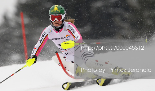 : Lena Duerr of Germany skiing in first run of women slalom race of FIS Alpine skiing World Championships in Schladming, Austria. Women slalom race of FIS Alpine skiing World championships Schladming 2013, was held in Schladming, Austria, on Saturday, 16th of February 2013.