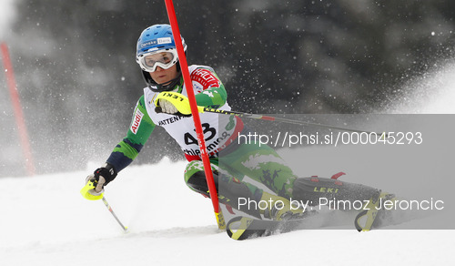 : Merle Soppela of Finland skiing in first run of women slalom race of FIS Alpine skiing World Championships in Schladming, Austria. Women slalom race of FIS Alpine skiing World championships Schladming 2013, was held in Schladming, Austria, on Saturday, 16th of February 2013.