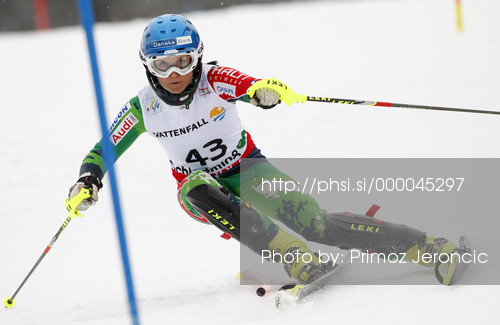 : Merle Soppela of Finland skiing in first run of women slalom race of FIS Alpine skiing World Championships in Schladming, Austria. Women slalom race of FIS Alpine skiing World championships Schladming 2013, was held in Schladming, Austria, on Saturday, 16th of February 2013.