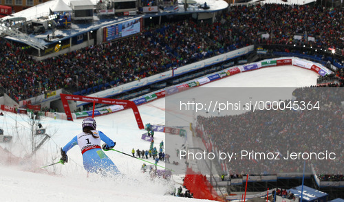 : Fifth placed Tina Maze of Slovenia skiing in second run of women slalom race of FIS Alpine skiing World Championships in Schladming, Austria. Women slalom race of FIS Alpine skiing World championships Schladming 2013, was held in Schladming, Austria, on Saturday, 16th of February 2013.