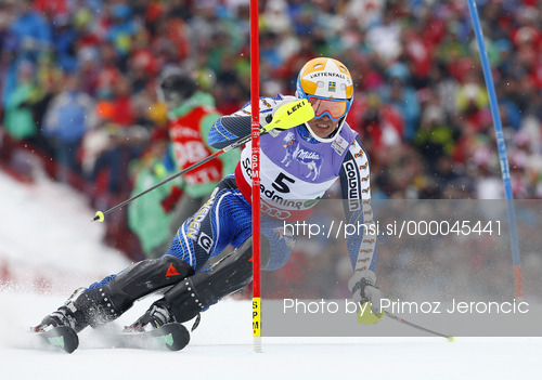 : Andre Myhrer of Sweden skiing in first run of men slalom race of FIS Alpine skiing World Championships in Schladming, Austria. Men slalom race of FIS Alpine skiing World championships Schladming 2013, was held in Schladming, Austria, on Sunday, 17th of February 2013.
