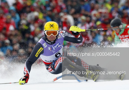 : Ivica Kostelic of Croatia skiing in first run of men slalom race of FIS Alpine skiing World Championships in Schladming, Austria. Men slalom race of FIS Alpine skiing World championships Schladming 2013, was held in Schladming, Austria, on Sunday, 17th of February 2013.