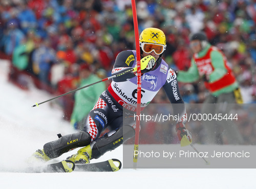 : Ivica Kostelic of Croatia skiing in first run of men slalom race of FIS Alpine skiing World Championships in Schladming, Austria. Men slalom race of FIS Alpine skiing World championships Schladming 2013, was held in Schladming, Austria, on Sunday, 17th of February 2013.