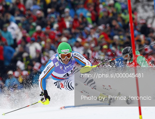 : Philipp Schmid of Germany skiing in first run of men slalom race of FIS Alpine skiing World Championships in Schladming, Austria. Men slalom race of FIS Alpine skiing World championships Schladming 2013, was held in Schladming, Austria, on Sunday, 17th of February 2013.