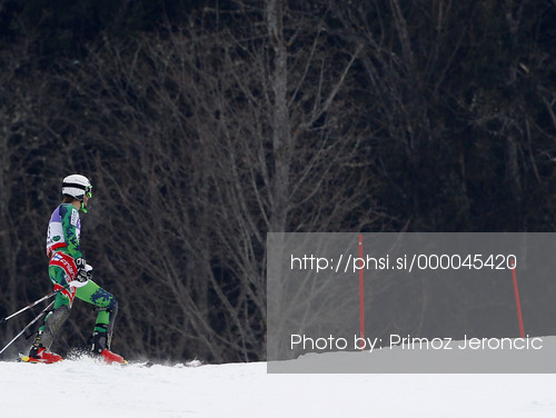 : Victor Malmstrom of Finland after DNF in first run of men slalom race of FIS Alpine skiing World Championships in Schladming, Austria. Men slalom race of FIS Alpine skiing World championships Schladming 2013, was held in Schladming, Austria, on Sunday, 17th of February 2013.