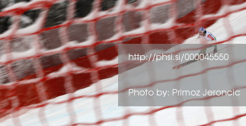 : Andreas Romar of Finland skiing in second training for men downhill race of FIS Alpine skiing World Cup in Garmisch-Partenkirchen, Germany. Second training for men downhill race of FIS Alpine skiing World Cup in Garmisch-Partenkirchen, Germany, was held on Friday, 22nd of February 2013.