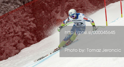 : Rok Perko of Slovenia skiing in second training for men downhill race of FIS Alpine skiing World Cup in Garmisch-Partenkirchen, Germany. Second training for men downhill race of FIS Alpine skiing World Cup in Garmisch-Partenkirchen, Germany, was held on Friday, 22nd of February 2013.