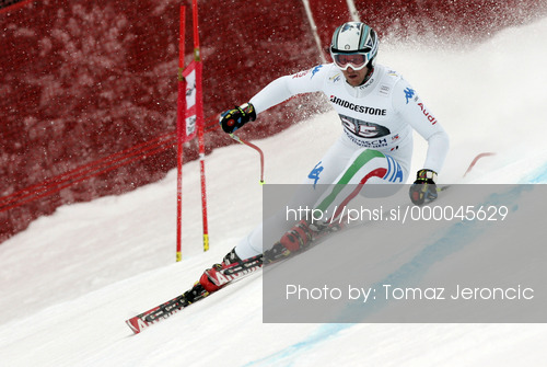 : Werner Heel of Italy skiing in second training for men downhill race of FIS Alpine skiing World Cup in Garmisch-Partenkirchen, Germany. Second training for men downhill race of FIS Alpine skiing World Cup in Garmisch-Partenkirchen, Germany, was held on Friday, 22nd of February 2013.