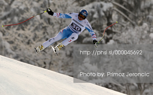 : Second placed Georg Streitberger of Austria skiing in men downhill race of FIS Alpine skiing World Cup in Garmisch-Partenkirchen, Germany. Men downhill race of FIS Alpine skiing World Cup in Garmisch-Partenkirchen, Germany, was held on Saturday, 23rd of February 2013.