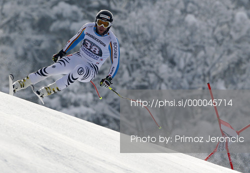 : Stephan Keppler of Germany skiing in men downhill race of FIS Alpine skiing World Cup in Garmisch-Partenkirchen, Germany. Men downhill race of FIS Alpine skiing World Cup in Garmisch-Partenkirchen, Germany, was held on Saturday, 23rd of February 2013.