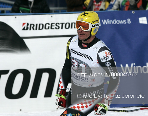 : Ivica Kostelic of Croatia reacts in finish of men downhill race of FIS Alpine skiing World Cup in Garmisch-Partenkirchen, Germany. Men downhill race of FIS Alpine skiing World Cup in Garmisch-Partenkirchen, Germany, was held on Saturday, 23rd of February 2013.