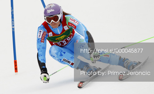 : Tina Maze of Slovenia skiing in first run of women giant slalom race of FIS Alpine skiing World Cup in Ofterschwang, Germany. Women giant slalom race of FIS Alpine skiing World Cup in Ofterschwang, Germany, was held on Saturday, 9th of March 2013.