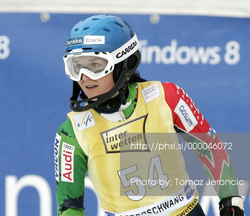 : Merle Soppela of Finland skiing in first run of women slalom race of FIS Alpine skiing World Cup in Ofterschwang, Germany. Women slalom race of FIS Alpine skiing World Cup in Ofterschwang, Germany, was held on Sunday, 10th of March 2013.