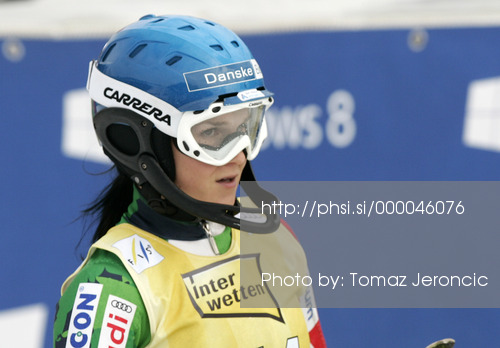 : Merle Soppela of Finland skiing in first run of women slalom race of FIS Alpine skiing World Cup in Ofterschwang, Germany. Women slalom race of FIS Alpine skiing World Cup in Ofterschwang, Germany, was held on Sunday, 10th of March 2013.