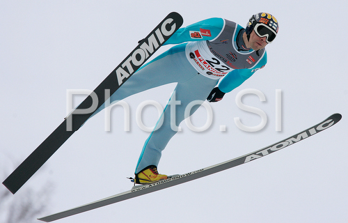 : Matti Hautamaeki of Finland soars through the air during first series of day 1 of FIS Ski jumping World Cup finals in Planica, Slovenia. Day 1 of FIS Ski jumping World cup finals was held in Planica, Slovenia, on K215 ski flying hill on 14th of March, 2008. FIS Ski jumping World cup finals were held in Planica, Slovenia between 13th and 16th of March 2008.