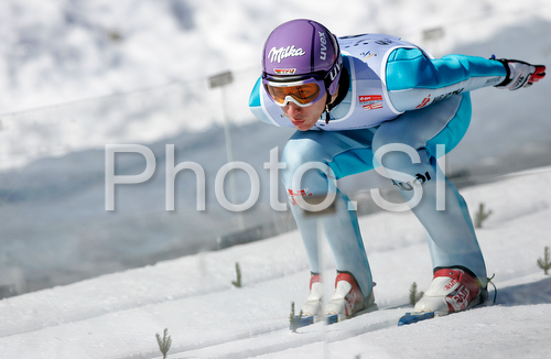 : Martin Schmitt of Germany takes off during training jump of FIS Ski jumping World Cup finals in Planica, Slovenia. Training session for team event of FIS Ski jumping World cup was held in Planica, Slovenia, on K215 ski flying hill on 15th of March, 2008. FIS Ski jumping World cup finals were held in Planica, Slovenia between 13th and 16th of March 2008.