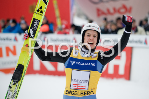 : Simon Ammann of Switzerland during first race of FIS Ski jumping World cup in Engelberg, Switzerland. First of two races for FIS Ski jumping World cup in Engelberg, Switzerland, was held on Saturday, 20th of December 2008 in Engelberg, Switzerland