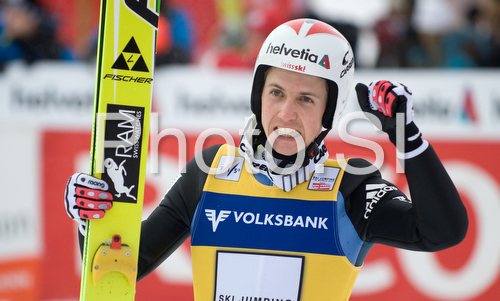 : Simon Ammann of Switzerland during first race of FIS Ski jumping World cup in Engelberg, Switzerland. First of two races for FIS Ski jumping World cup in Engelberg, Switzerland, was held on Saturday, 20th of December 2008 in Engelberg, Switzerland
