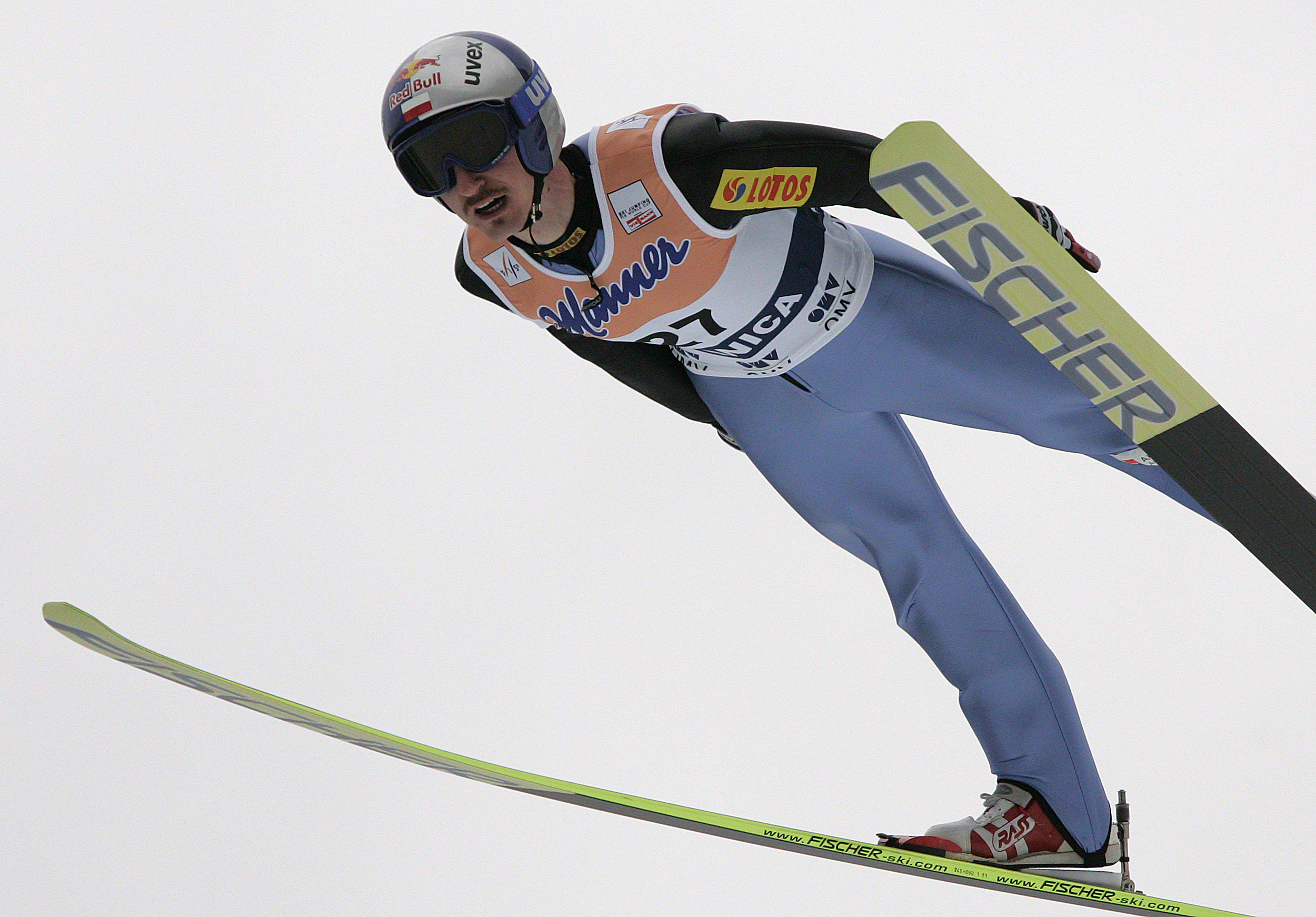 : Second placed Adam Malysz of Poland soars through the air during first round of day 1 of FIS Ski jumping World Cup finals in Planica, Slovenia. First day of FIS Ski jumping World cup finals was held on Friday, 20th of March 2009 in Planica, Slovenia.