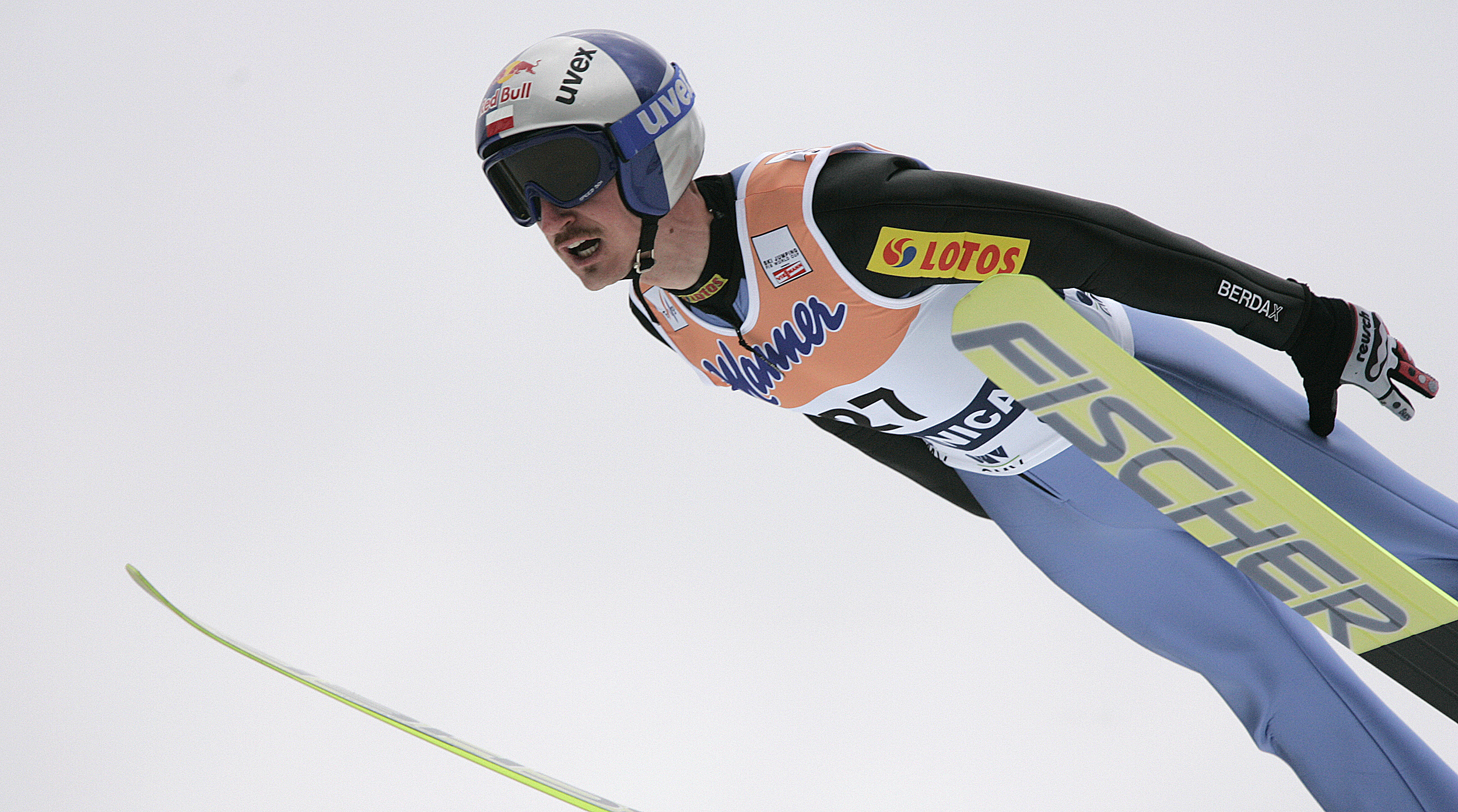 : Second placed Adam Malysz of Poland soars through the air during first round of day 1 of FIS Ski jumping World Cup finals in Planica, Slovenia. First day of FIS Ski jumping World cup finals was held on Friday, 20th of March 2009 in Planica, Slovenia.