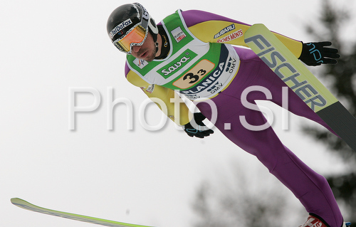 Planica ,Slovenia - 21.03.2009 : Emmanuel Chedal of France soars through the air during first round of Team competition of FIS Ski jumping World Cup finals in Planica, Slovenia. Team competition of FIS Ski jumping World cup finals was held on Saturday, 21st of March 2009 in Planica, Slovenia. Photo by: Primoz Jeroncic