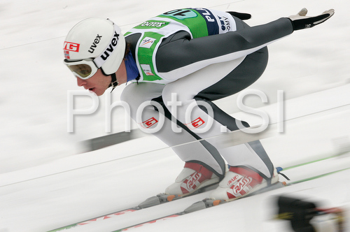 : Johan Remen Evensen of Norway on inrun during trial round of Team competition of FIS Ski jumping World Cup finals in Planica, Slovenia. Team competition of FIS Ski jumping World cup finals was held on Saturday, 21st of March 2009 in Planica, Slovenia.