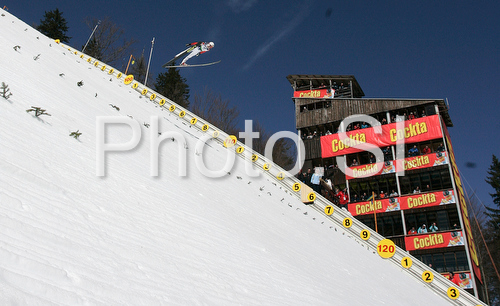 : Primoz Pikl of Slovenia soars through the air during first round of final race of FIS Ski jumping World Cup finals in Planica, Slovenia. Last race of FIS Ski jumping World cup 2008-09 was held on Sunday, 22nd of March 2009 in Planica, Slovenia.