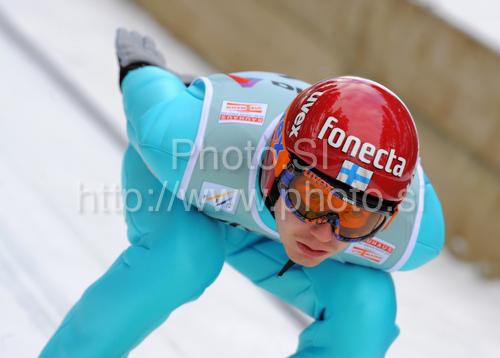 : Harri Olli (FIN) during FIS ski jumping World cup in Engelberg, Switzerland. FIS Ski jumping World Cup race in Engelberg, Switzerland, was held on 18th of December 2009.