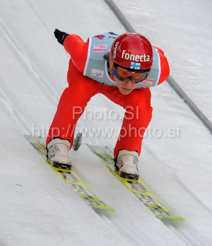 : Kalle Keituri (FIN) during FIS ski jumping World cup in Engelberg, Switzerland. FIS Ski jumping World Cup race in Engelberg, Switzerland, was held on 18th of December 2009.