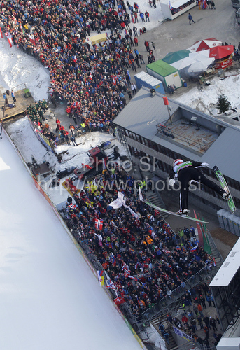 : Johan Remen Evensen of Norway soars through the air during first day of FIS Ski flying World championships in Planica, Slovenia. First day of FIS Ski flying World Championships was held on Friday, 19th of March 2010, in Planica, Slovenia.
