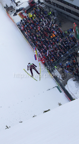 : Emmanuel Chedal of France soars through the air during first day of FIS Ski flying World championships in Planica, Slovenia. First day of FIS Ski flying World Championships was held on Friday, 19th of March 2010, in Planica, Slovenia.