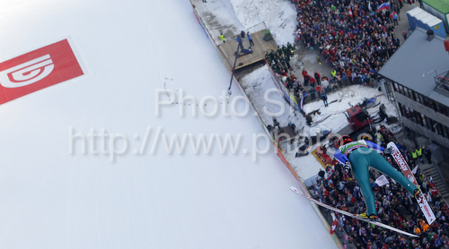: Janne Ahonen of Finland soars through the air during first day of FIS Ski flying World championships in Planica, Slovenia. First day of FIS Ski flying World Championships was held on Friday, 19th of March 2010, in Planica, Slovenia.