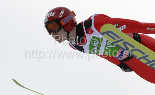 : Harri Olli of Finland soars through the air during first day of FIS Ski flying World championships in Planica, Slovenia. First day of FIS Ski flying World Championships was held on Friday, 19th of March 2010, in Planica, Slovenia.