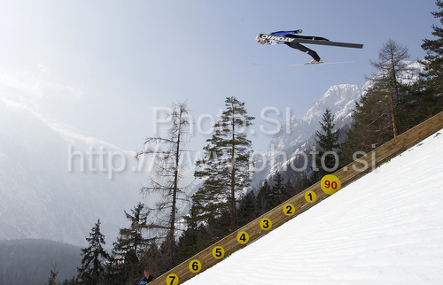 : Bjoern Einar Romoeren of Norway soars through the air during his ski jump of second day of FIS Ski flying World championships in Planica, Slovenia. Second day of FIS Ski flying World Championships was held on Saturday, 20th of March 2010, in Planica, Slovenia.