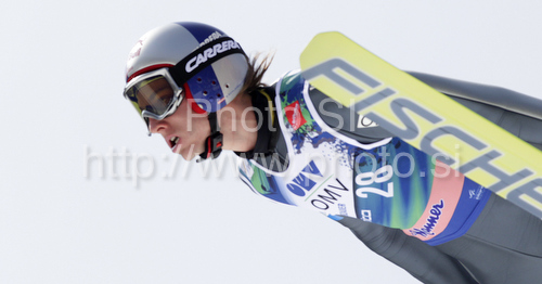 : Gregor Schlierenzauer of Austria soars through the air during his ski jump of second day of FIS Ski flying World championships in Planica, Slovenia. Second day of FIS Ski flying World Championships was held on Saturday, 20th of March 2010, in Planica, Slovenia.
