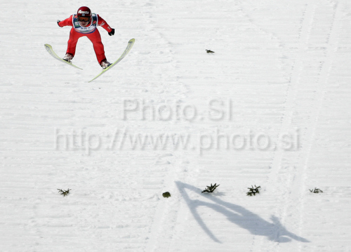 : Harri Olli of Finland soars through the air during his jump during second day of FIS Ski flying World championships in Planica, Slovenia. Second day of FIS Ski flying World Championships was held on Saturday, 20th of March 2010, in Planica, Slovenia.