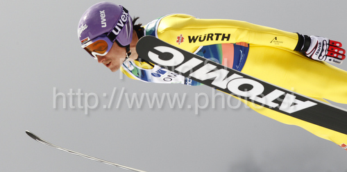 : Martin Schmitt of Germany soars through the air during his ski jump of team event of FIS Ski flying World championships in Planica, Slovenia. Second day of FIS Ski flying World Championships was held on Sunday, 21st of March 2010, in Planica, Slovenia.