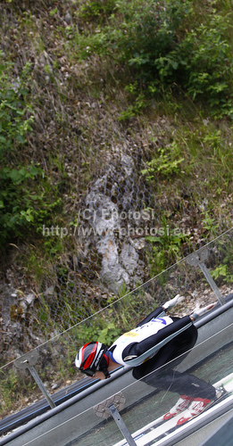 : Ski jumper competing in FIS Summer ski jumping Continental cup race, which was held in Kranj, Slovenia. First out of two races of FIS Skumer ski jumping Continental Cup was held on Friday, 2nd of July 2010 on HS 109 ski jumping hill in Kranj, Slovenia.