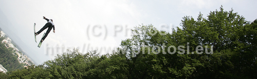 : Ski jumper competing in FIS Summer ski jumping Continental cup race, which was held in Kranj, Slovenia. First out of two races of FIS Skumer ski jumping Continental Cup was held on Friday, 2nd of July 2010 on HS 109 ski jumping hill in Kranj, Slovenia.